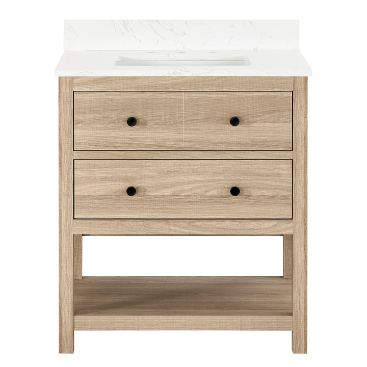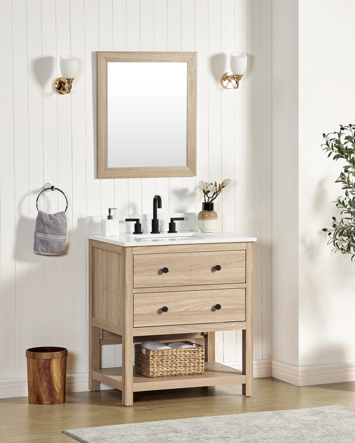 Elevate smaller bathroom spaces with the sleek functionality and organic warmth of the Encino 30" Single Bathroom Vanity. Blending a minimalist profile with smart storage, this vanity is ideal for powder rooms or compact layouts that don’t compromise on style.