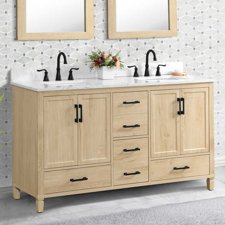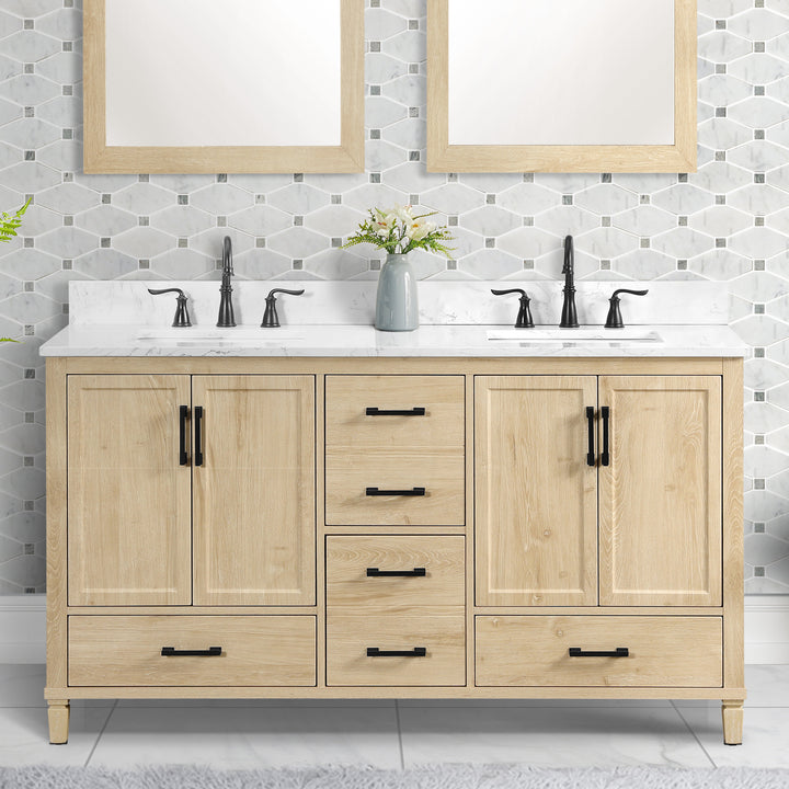 Designed for spacious bathrooms and shared suites, the Hardin 60" Double Bathroom Vanity combines functional storage with a serene, organic aesthetic. With its soft wood tones, generous layout, and premium finishes, this vanity brings balance and beauty to modern or transitional spaces.
