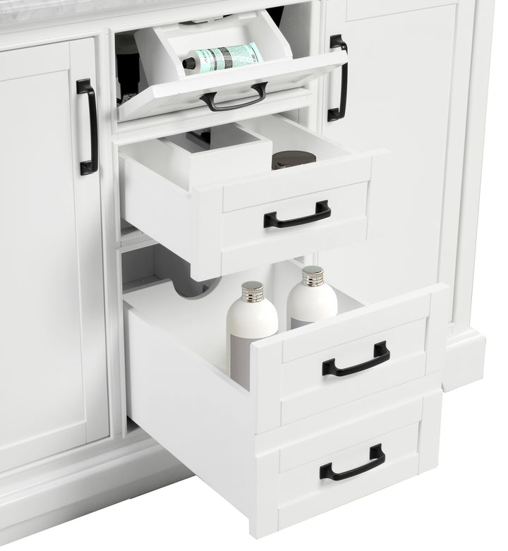 Storage: 2 soft-closing drawers, 1 tilt-out drawer, and 2 soft-closing doors