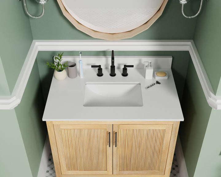 ✅ Top Compatibility – Pure White Quartz top with 4-in backplash