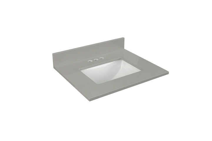 This vanity top measures 22" deep x ¾" thick and is available in multiple widths. Pre-drilled for an 8" widespread faucet (except 25" size, which is pre-drilled for a 4" widespread faucet; faucet sold separately), it’s ready for quick and easy installation.