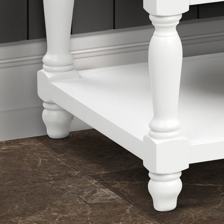 With adjustable leveling feet for stable placement and pre-drilled faucet holes for a standard setup (faucet not included), this vanity is ready to transform your primary bathroom or guest suite.