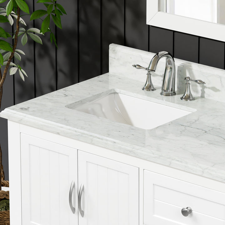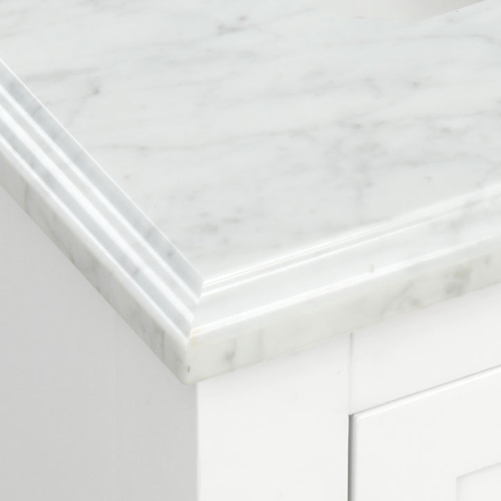 Countertop: 1" thick premium Carrara natural marble with 4" backsplash