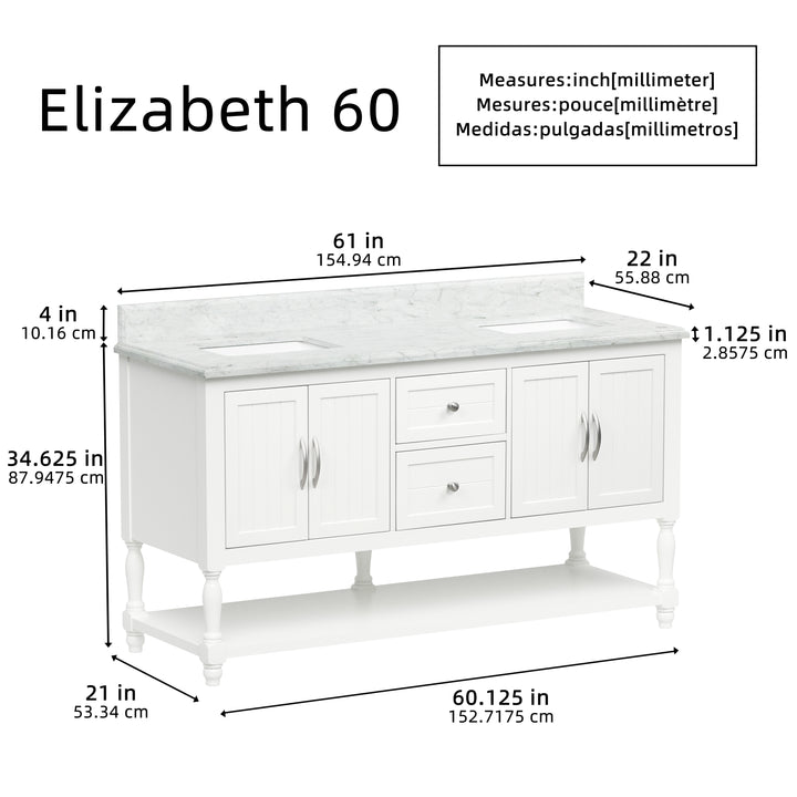 Vanity Size: 61" W x 22" D x 34.5" H – ideal for large bathrooms