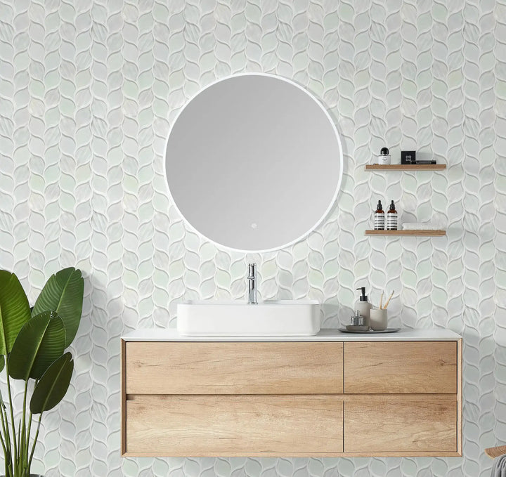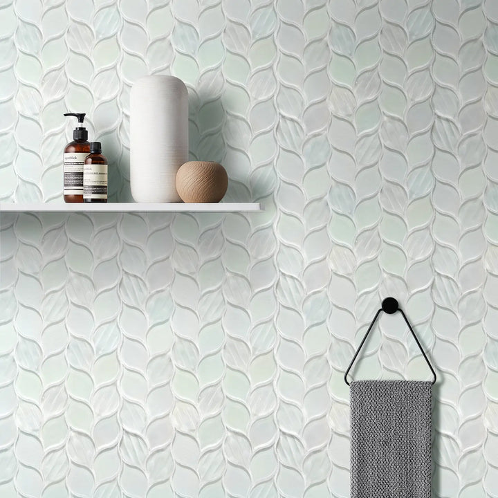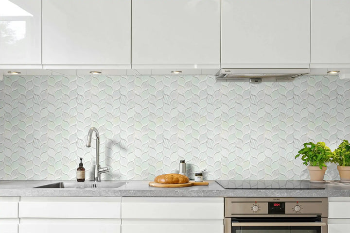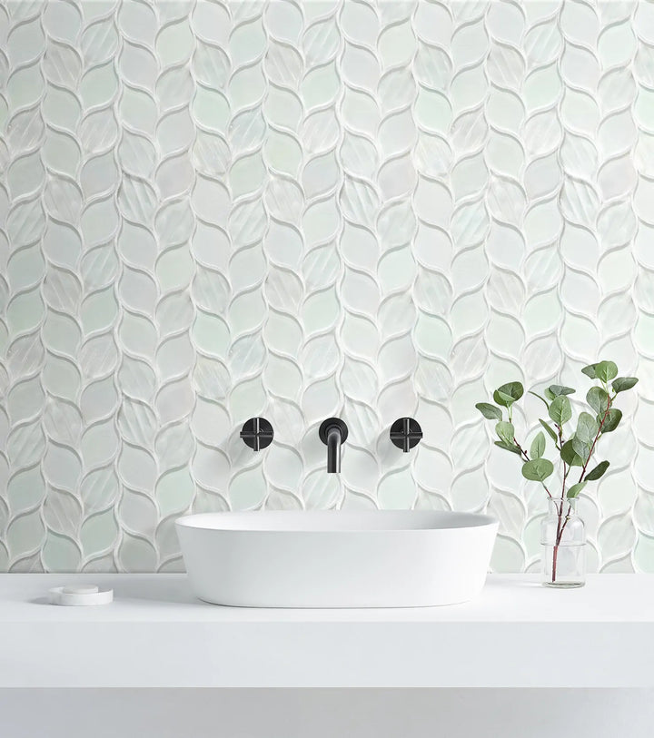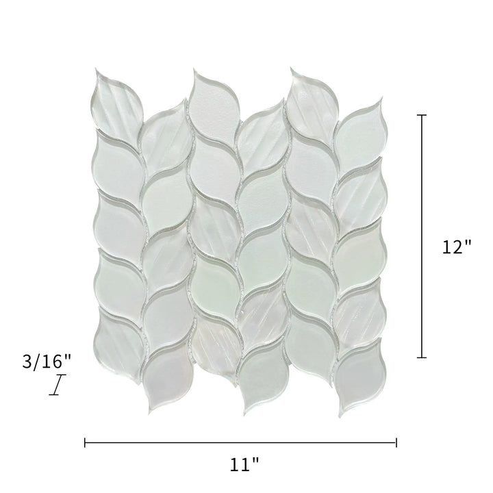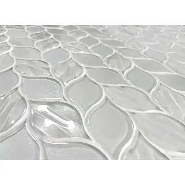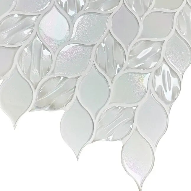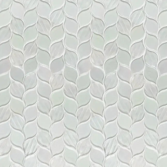 Elevate your interior design with the Laser Cut Pure White Iridescent Glass Mosaic, featuring an elegant ascending leaf design that brings a refined, nature-inspired aesthetic to any room. Crafted with laser-cut precision and a smooth iridescent finish, these mosaic tiles reflect light beautifully to create a luminous, upscale ambiance.