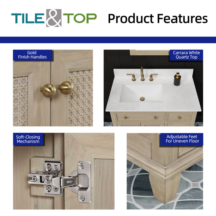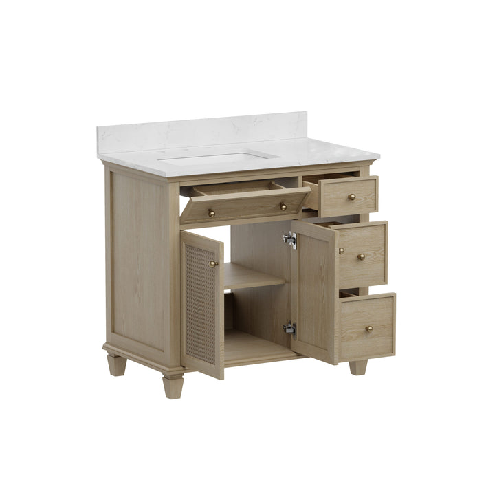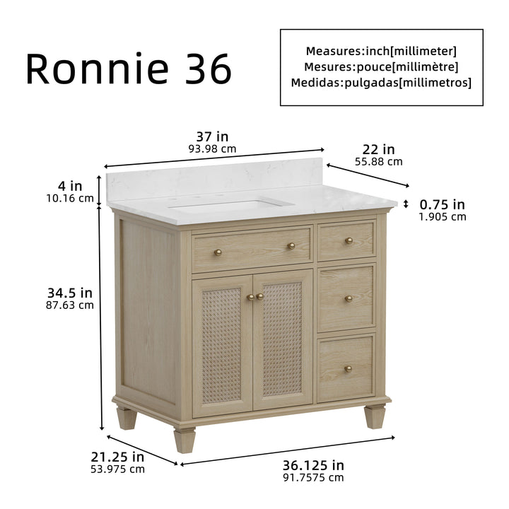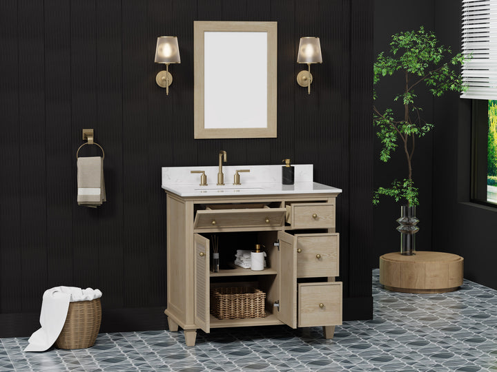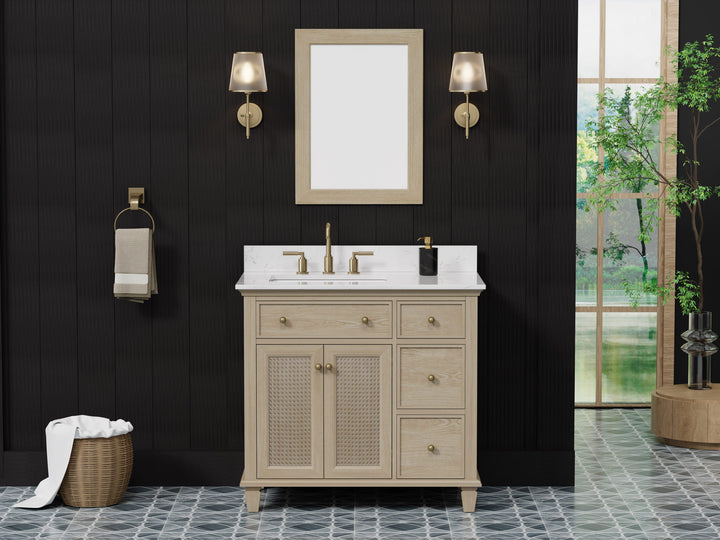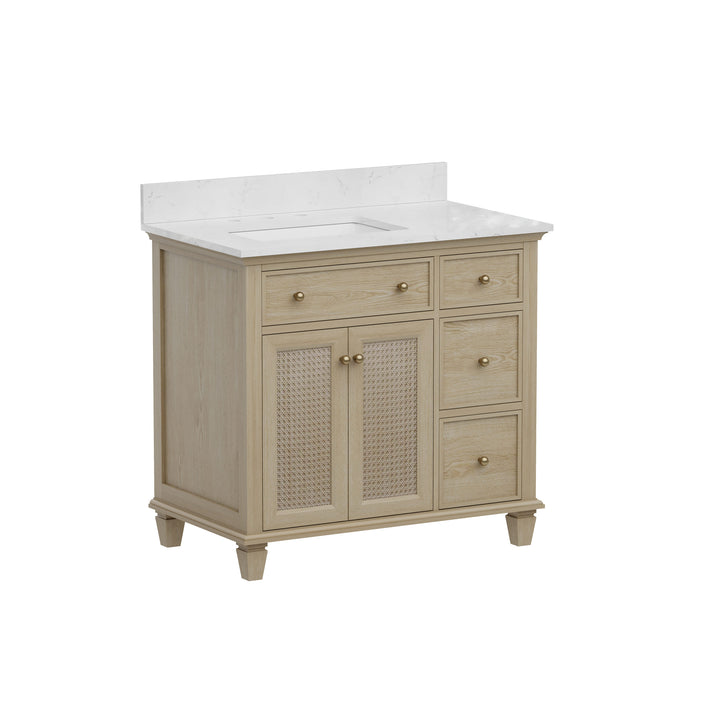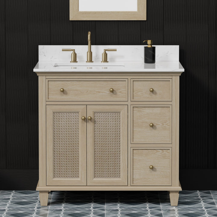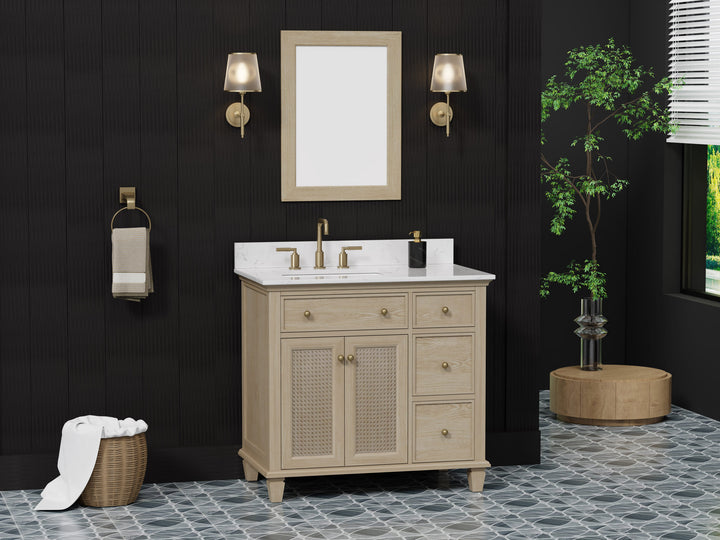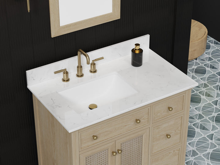 36" Ronnie Vanity Set with White Carrara Quartz Top