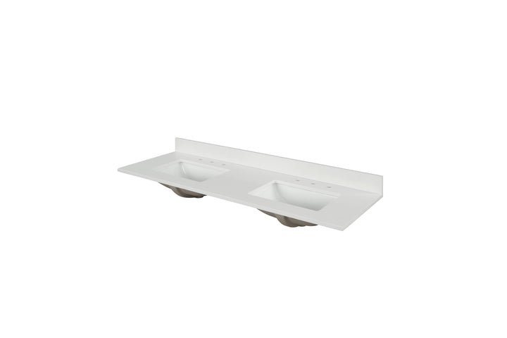 Crafted from premium engineered quartz, the non-porous surface is stain-, scratch-, moisture-, and bacteria-resistant, ensuring years of beauty with minimal maintenance. The eased edge profile and 4" high backsplash add a refined touch, while the included rectangular undermount sink offers clean lines and practicality.